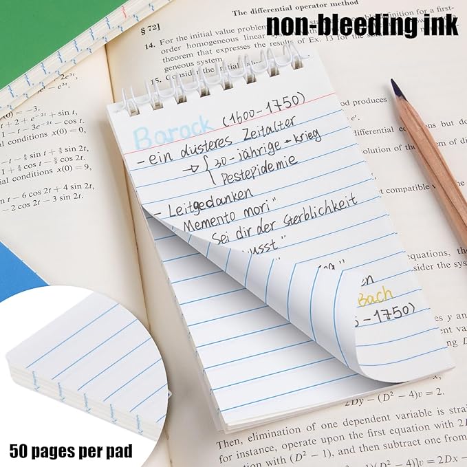 - TOP SPIRAL BINDING - Our college-ruled memo book features a top spiral binding that allows the pages to lay flat. This ensures the most comfortable writing conditions for both right-handed and left-handed users. The snag spiral binding won't catch on clothing or in purses or backpacks, providing a hassle experience. This mini memo book also allows for easy page-turning, enhancing your productivity.