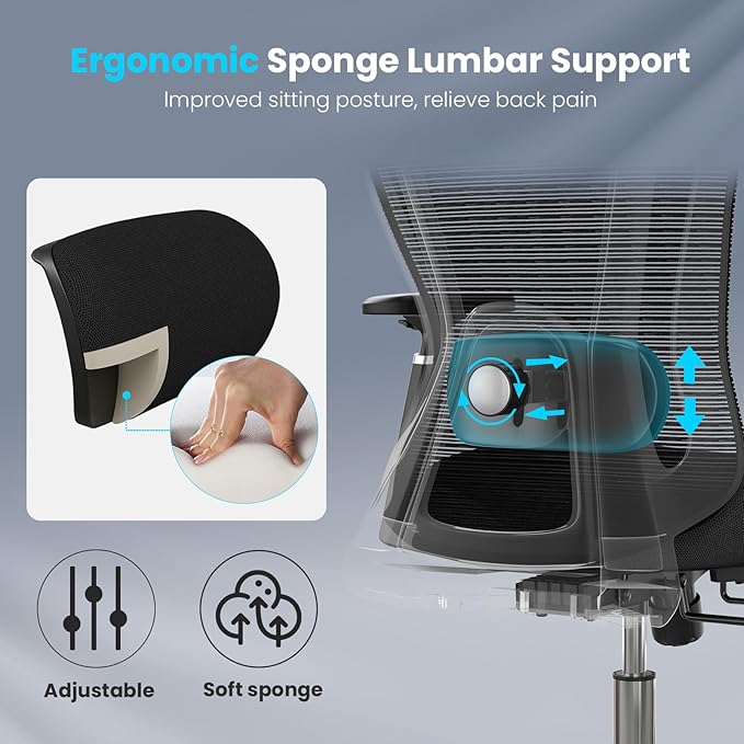 - Comfortable and Breathable: With high-quality reinforced mesh, our ergonomic office chair keeps your back cool and comfortable while keeping you focused and relaxed. It also has soft PU padded armrests and high-density sponge cushion for enhanced comfort.