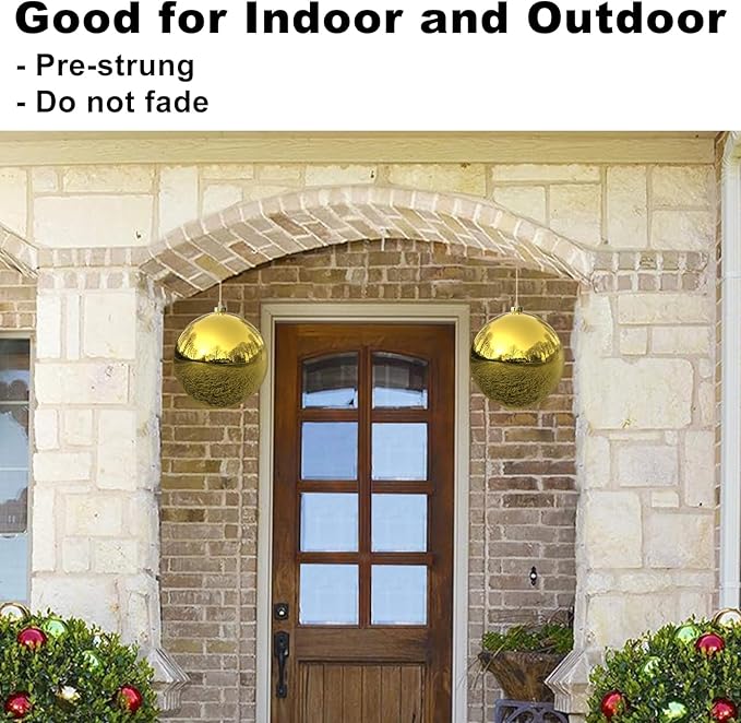 Gold 8.0" Extra Large Christmas Ornaments - Christmas Tree Decoration Balls Shatterproof Hanging Shiny Balls for Birthday Holiday Wedding Decorations Set of 2pcs