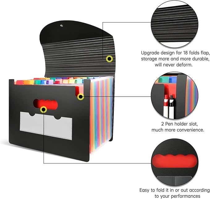 - 【Beauty Appearance】The white cover and rainbow pockets for this new potable filing holder with flexible lid is designed by ourselves. It is the newest version in the market now. It not only collecting your documents in order and find them easily because of the tags, but also decorates your office or home desk charming and out of standing.