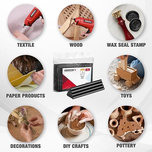 - Extra-strong Bond: With a higher EVA content compared to traditional glue sticks, our product delivers an extra-strong bond. It ensures that your projects stay securely in place, whether you're working with paper, fabric, wood, or other materials.With their superior adhesive properties, these glue sticks create a strong and reliable bond on various surfaces, including paper, fabric, wood, plastic, and more. Your projects will stay intact
