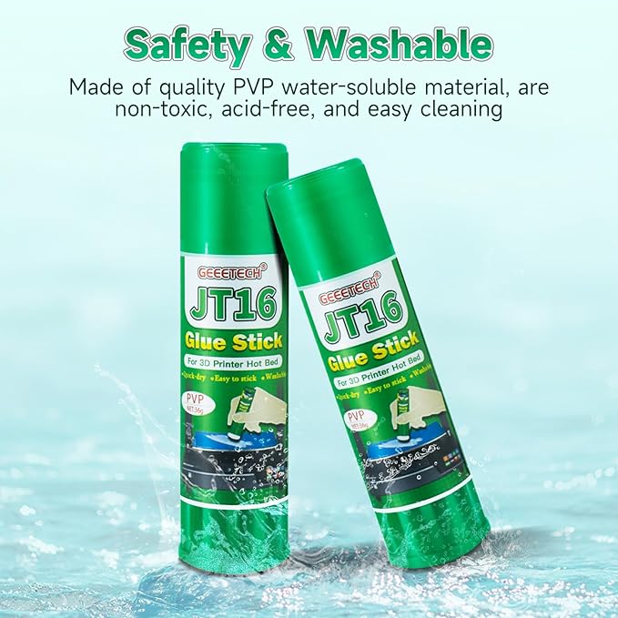 - Safe: 3D printer glue stick is made of quality PVP material, are non-toxic and acid-free, do not give off any unpleasant fumes when heated, and don't have any detrimental effect on your project or health. You can have peace of mind when the kids are using it.