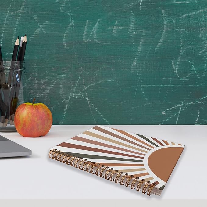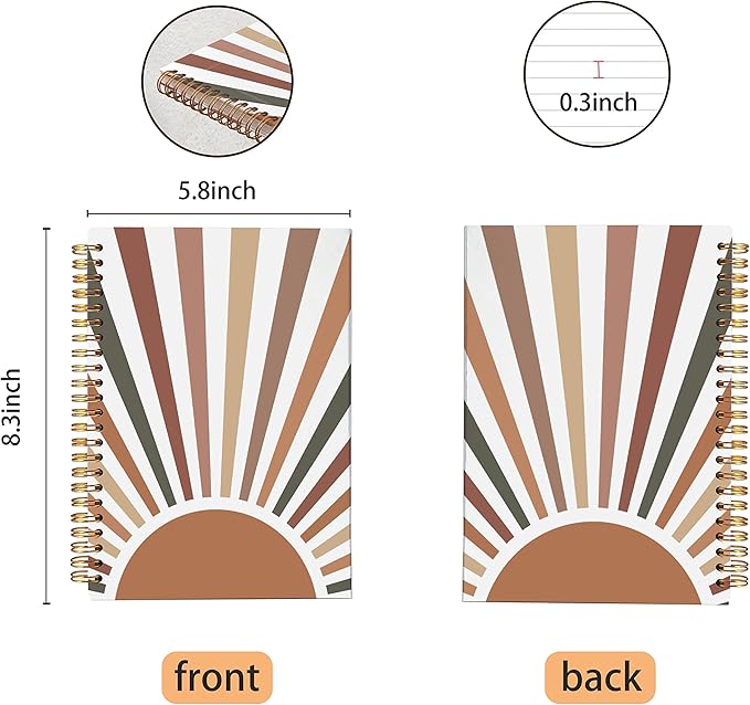 VNWEK Boho Sun Sunrise Sunset Colorful Sunshine Spiral Notebook Journal 5.5×8.3 Inch,Boho Mid-Century Modern Art Lined Hardcover Spiral Notebook for Work Notes Journaling,Boho Gifts for Women Girls