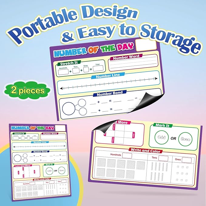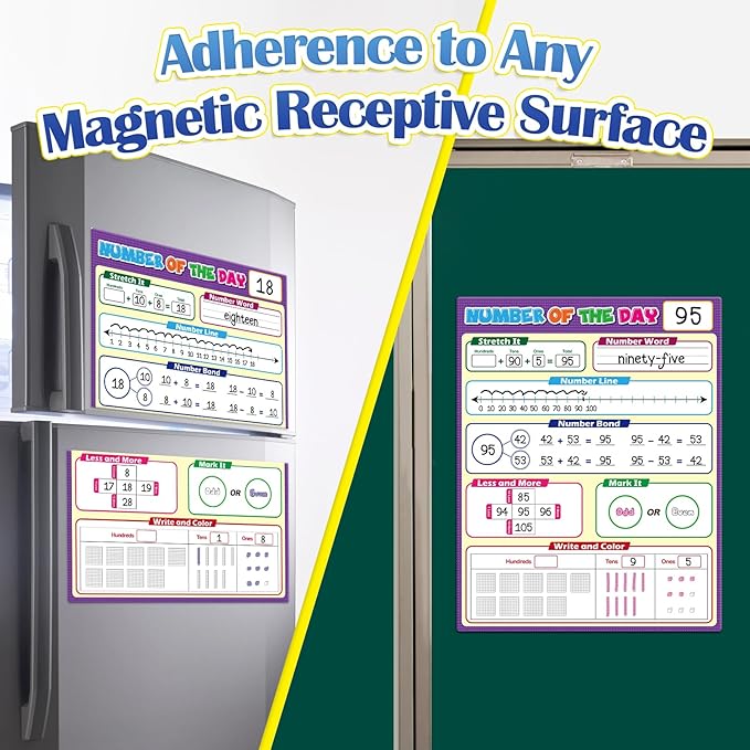 - 【A Great Way to Build Number Sense】Explore numbers in a variety of different ways using this flexible magnetic paper. Simply write a number at the top of the chart and invite students to write it in word form, mark it on a number line, color it as a series of base ten blocks, split it in number bonds, and separate out the hundreds, tens and ones digits. Then just wipe the chart clean to start again! Practicing so many math skills on one reusable paper.