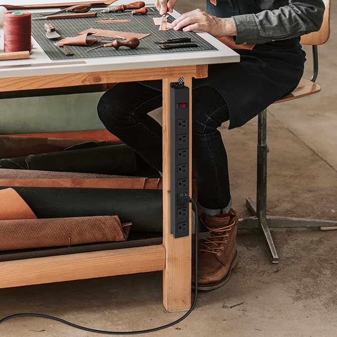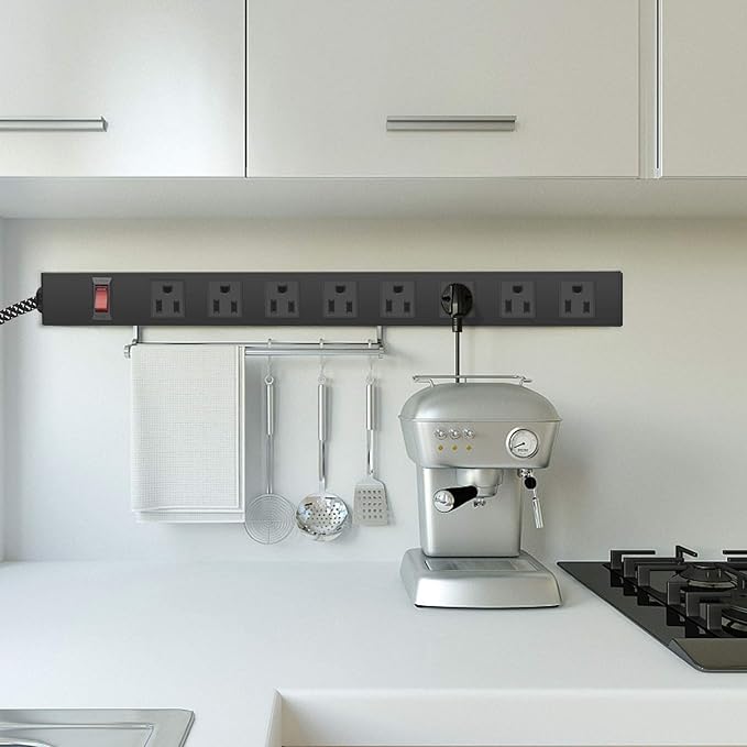 - 【8 in 1 Power Strip】This mountable power strip features 8 outlets and 1 switch, providing you with multiple options to connect your devices. With a 6 feet 14AWG braided cord, it ensures durability and easy reach to power sources. Rated at 1200J, 1875W, 15A, 125V, 60Hz, and with SGS certification, it guarantees safe and reliable charging.