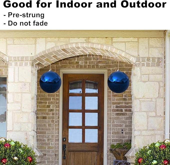 Navy Blue 8.0" Christmas Balls Ornaments - Extra Large Christmas Tree Decoration Shatterproof Hanging Shiny Balls for Birthday Holiday Wedding Decorations Set of 2pcs