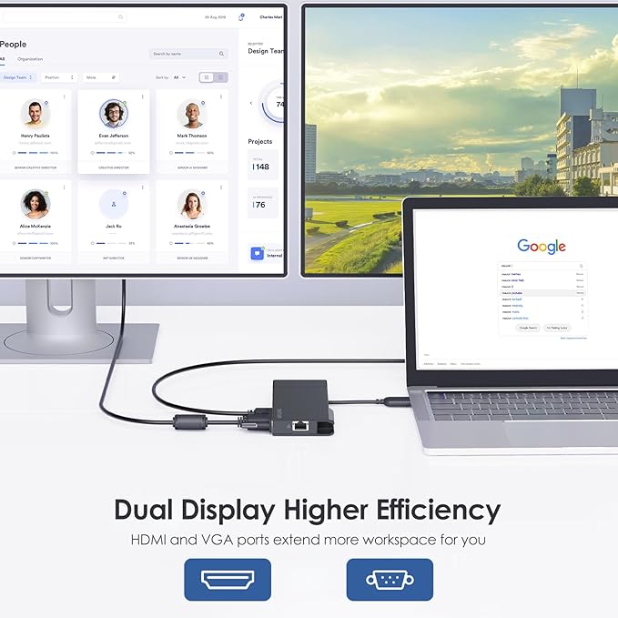 - 【Dual Display 2K HDMI 1080P VGA】 Utilizes this mini dock to drive a HDMI monitor at resolutions up to 2560x1440@50Hz or 1920x1080@60Hz, and a VGA monitor up to 1920x1080@60Hz. Built-in 5 Gbps USB-A 3.0 4.5 inch long cable. Comes with a USB-A to C converter to fit USB C and A host.
