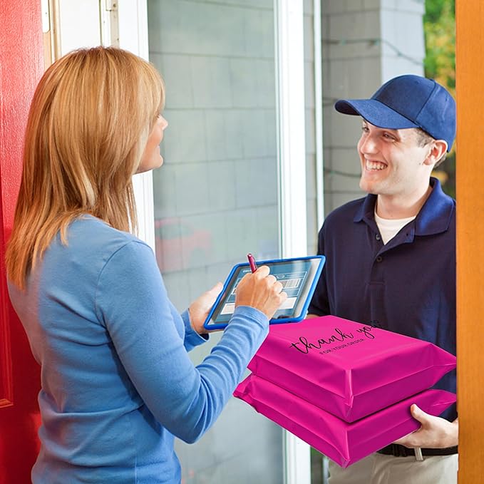 JinRuiKJ Thank You Poly Mailer 12x15.5 Inch 50 PCS, Shipping Bags for Clothing, Packaging Bags for Small Business, Strong Adhensive, Waterproof and Tear-Resistant Mailing Envelopes, Rose Red