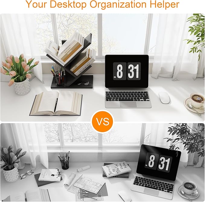 - 【Safe to Use】The book tree bookshelf is made of 12mm high-quality particle board and with backboard reinforcement design to provide great stability and durability. Besides, our desktop bookshelf meets the EPA TSCA Title VI and CARB Certification, which can offer you a safe, healthy storage space in your room.