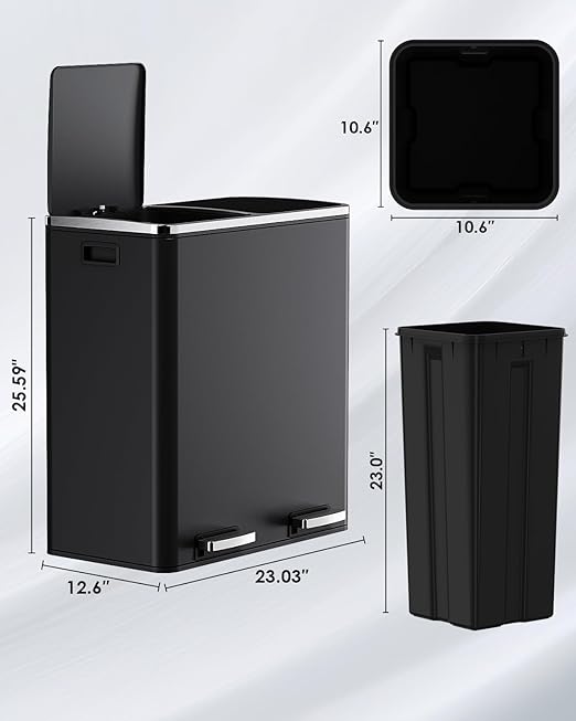 - 2*8 GALLONS COMPARTMENTS: Trash can has two independently compartments for trash and recyclables, making it easy to sort waste.