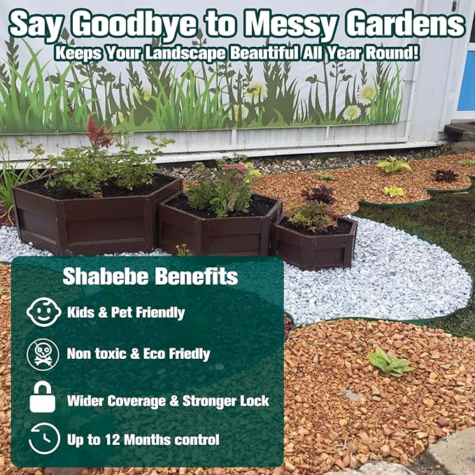 - 【ARE YOU FRUSTRATED TO MAINTAIN UNTIDY LANDSCAPES?】 Feel the Overgrown grass is hard to sweeping and waste time? Feel gardener fees is Expensive and waste money? Shabebe Mulch Glue can solve all of your problem. Garden enthusiasts' ultimate go-to product for achieving exceptional results. Keeps Your Landscape Beautiful All Year Round!