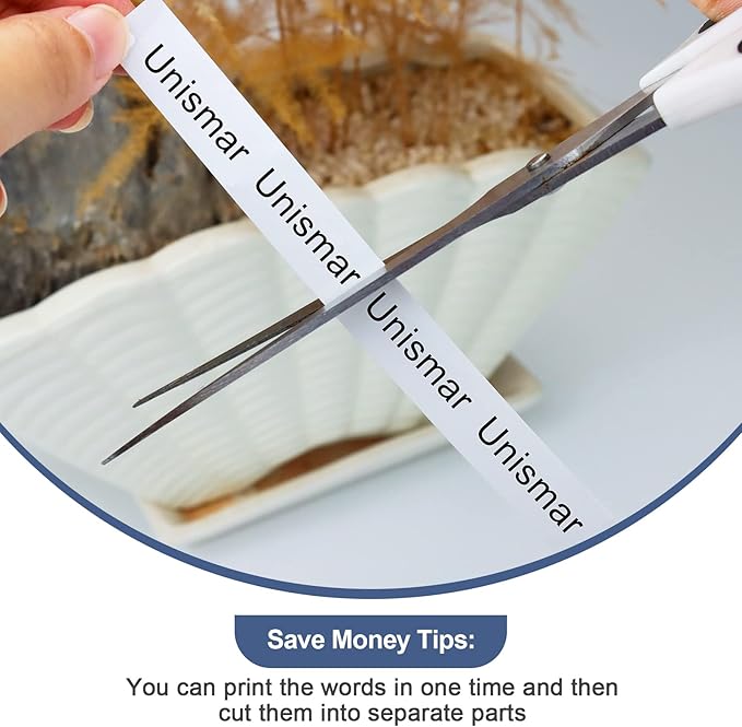 - You could print all the text you need together on one long label tape, then cut them into individual labels. You can use the tz tape 12mm 0.47 laminated white label your cabinets, storage boxes, files, kitchen items