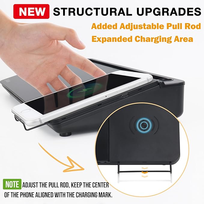 - 📳WIRELESS CHARGING: Say goodbye to tangled cords by simply laying your phone on the charging stand.Quick charging (output:max15w), safe and reliable, it is FCC part 15 Certified and have over-current protection. Notes: 1. It is best to use a ≥20w adapter for power supply; 2. Pls confirm that your phone supports wireless charging. 3. The thickness and material of the phone case will affect the charging function, for a better experience, we hope you to remove the phone case.