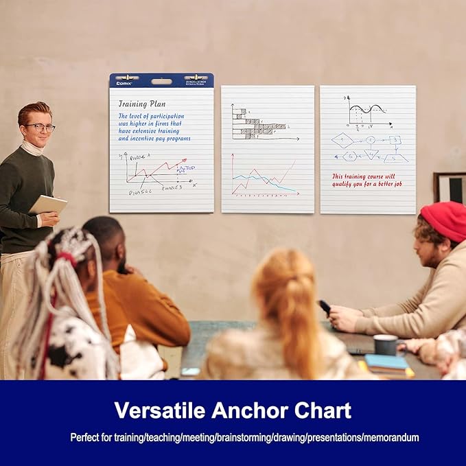 - 【Tips】Comix anchor chart paper is suitable for sticking on the indoor flat substrates ,such as latex walls, wooden door, glass, blackboards, whiteboards, metal, etc. lt is not recommended to stick on the conspicuously concave-convex substrates, specially diatomaceous mud wall or spray painted walls.