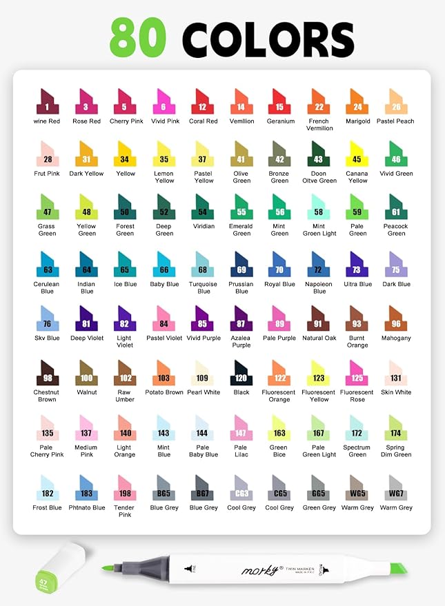 - PERFECT COLOR MATCHING WITH APP: Our professional alcohol coloring markers comes with free App that allows you to quickly find the right marker and achieve the perfect color for your painting. Our dual tip alcohol marker for artist solves the problem of color difference and inability to quickly identify markers in other products, making it very suitable for beginners and advanced users