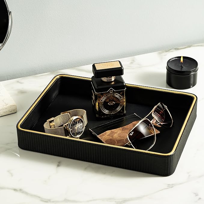 - š Helping You Find the Best Gift Ideas for All Occasions -Christmas gift for Women or Mens. Your loved ones will love this as a skincare organizer, perfume organizer as their vanity storage. They are timeless bedroom essentials and bedroom accessories. This gift also functions as men cologne tray, mens catch all trays, leather desk organizer, table decor, storage tray, office storage, dump tray, nightstand organizer tray, keys bowl for entryway table or key basket for entryway table - you name it.