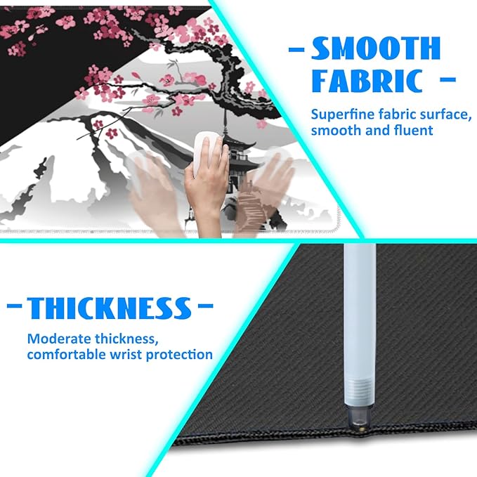 - ♡About The Size♡: This big gaming mouse pad is large enough and 3 mm thick to reduce the impact of uneven surfaces, so you don't have to worry about typing all day The bones under my hands really hurt, giving you a comfortable experience while protecting your desk, accommodating both your gaming mouse, full-size mechanical keyboard and other desktop items, keeping your desk tidy and also improving your work efficiency and feel.