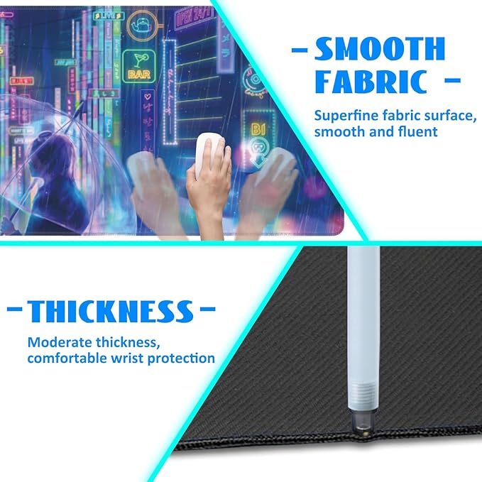 - ♡About The Size♡: This big gaming mouse pad is large enough and 3 mm thick to reduce the impact of uneven surfaces, so you don't have to worry about typing all day The bones under my hands really hurt, giving you a comfortable experience while protecting your desk, accommodating both your gaming mouse, full-size mechanical keyboard and other desktop items, keeping your desk tidy and also improving your work efficiency and feel.