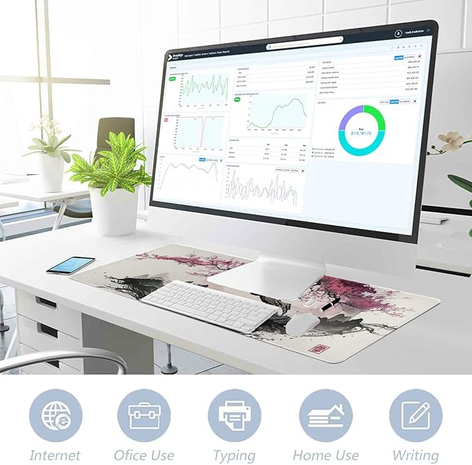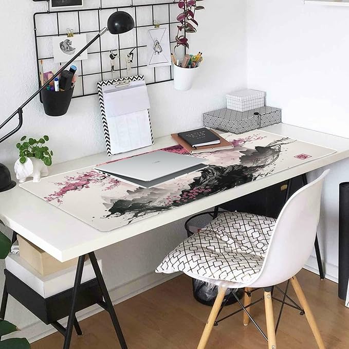 Japanese Art Style XL Mouse Pad - Non-Slip Mouse Pad Protector with Cherry Blossom Sakura Ink Design for Gaming and Work