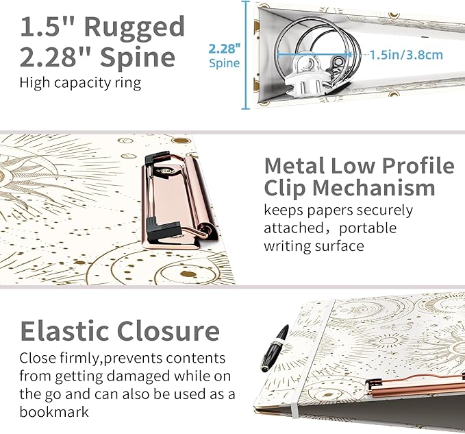Ospelelf 3 Ring Binder, 1.5 Inch, Cute Letter Size (11" x 8.5") with 5 Tab Dividers, File Folder Labels and Low Profile Clipboards, Tarot Cards Binder for School and Office Supplies
