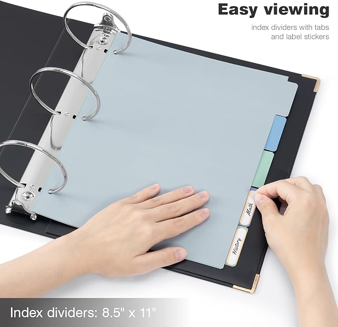 - 【Binder with Dividers】Binder comes with 5 index dividers with tabs and 18 custom label stickers for easy viewing. Features two interior pocket to store letter size papers and important loose documents.