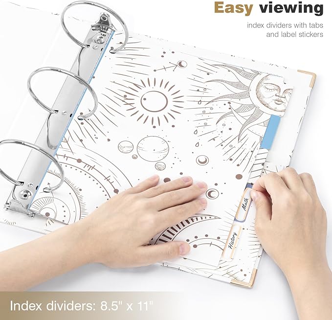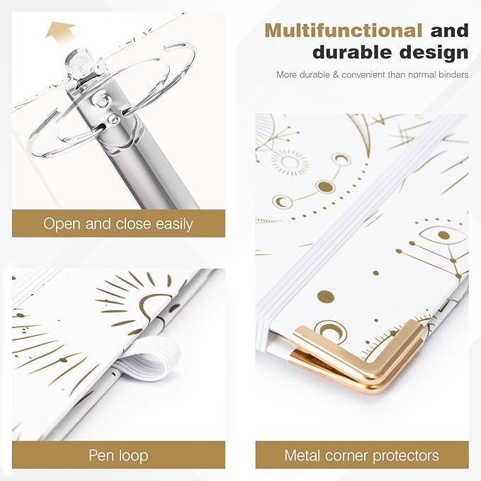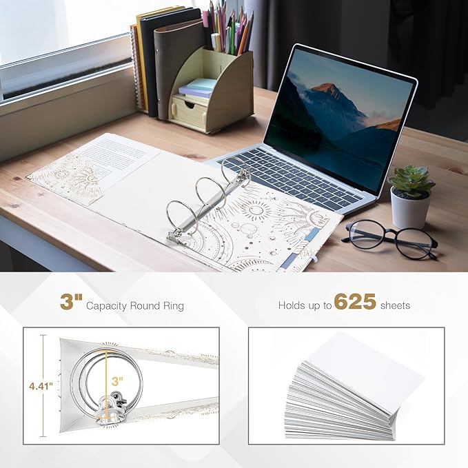 Ospelelf 3 Ring Binder 3 Inch, Cute Binder for Letter Size (11" x 8.5") with 5 Tab Dividers, File Folder Labels and Low Profile Clipboards, Tarot Cards Binder for School Supplies and Office Supplies