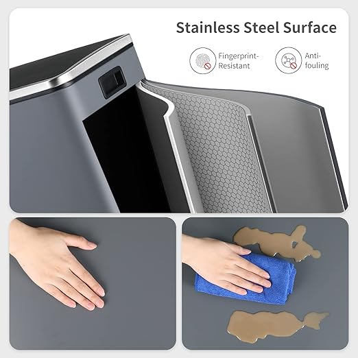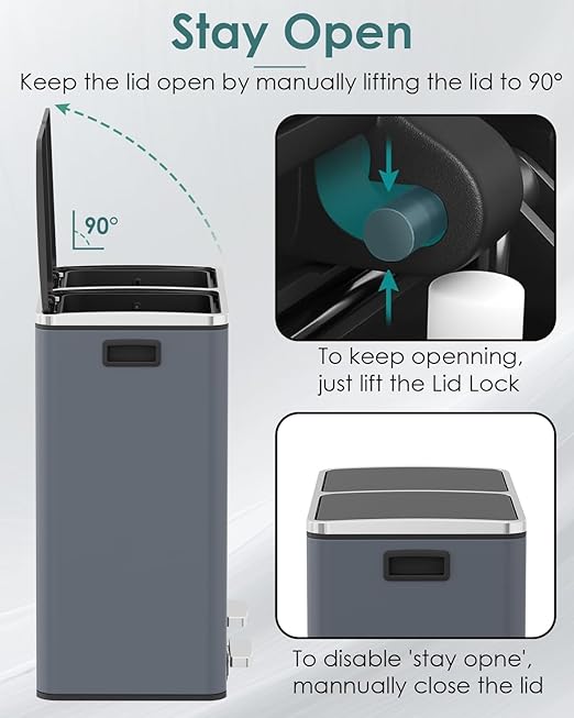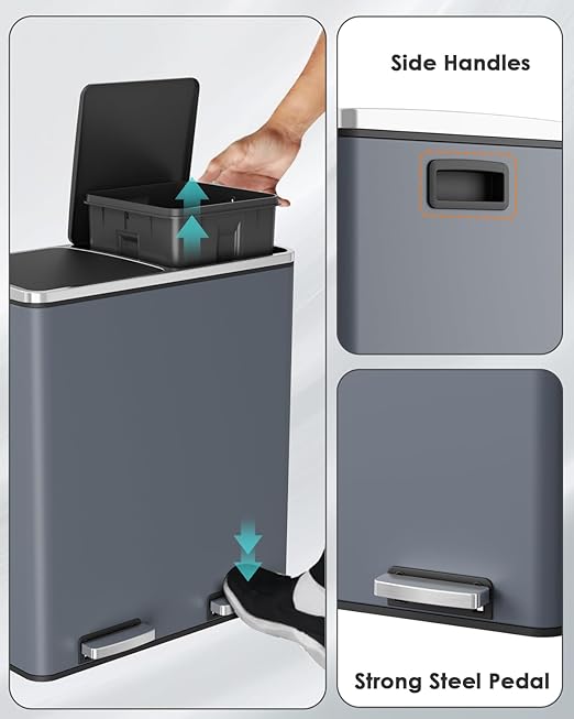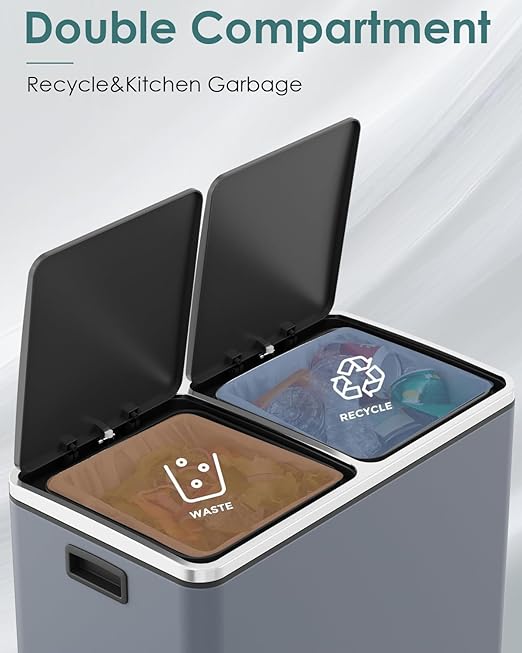 - 2*8 GALLONS COMPARTMENTS: Trash can has two independently compartments for trash and recyclables, making it easy to sort waste.