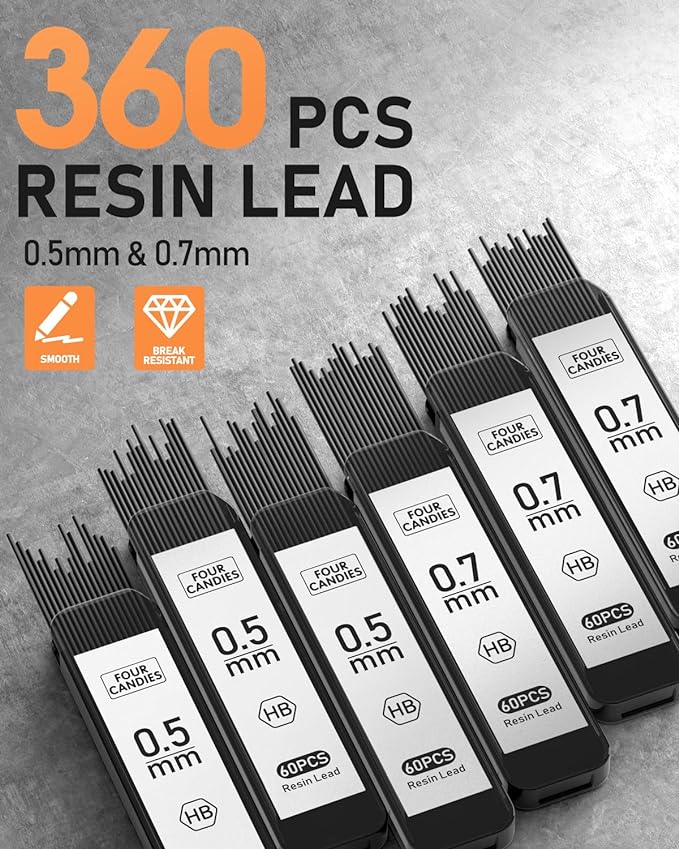 - 【360PCS Resin Lead】6 tubes of 60pcs super capacity leads. A more durable resin lead which doesn’t require sharpening and is not easy to break at the tip or break in the shaft, provides ultra-smooth writing and clear dark lines.