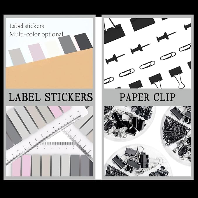 - EASY TO CARRY - You can put these black desk accessories in the drawer or desk at will, it won't take up too much space. The clips are equipped with a lattice storage box for easy organization use and storage.You can also put school supplies set in your handbag or schoolbag and take them anywhere.