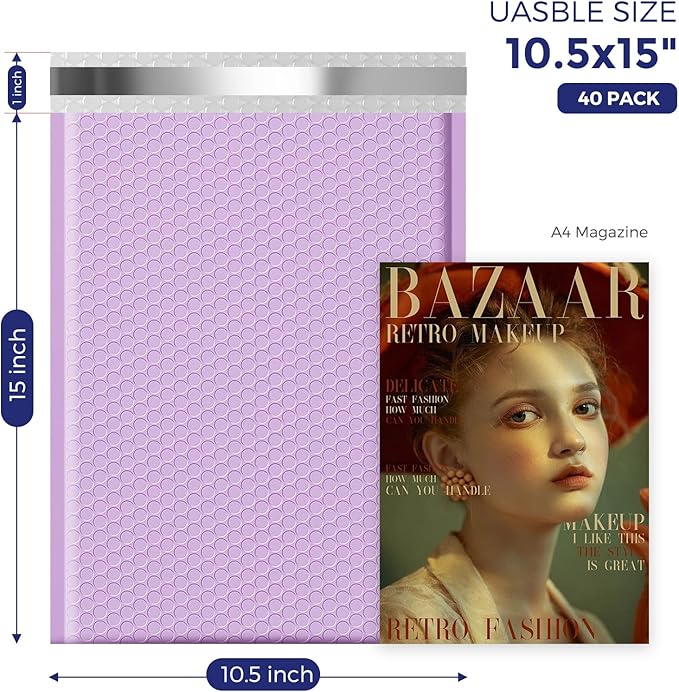Fuxury Large Bubble Mailers 10.5x16" 40 Pack Self Seal Padded Envelopes Waterproof Mailing Envelopes Bubble Padded Mailers for Packaging, Small Business #5 Lavender
