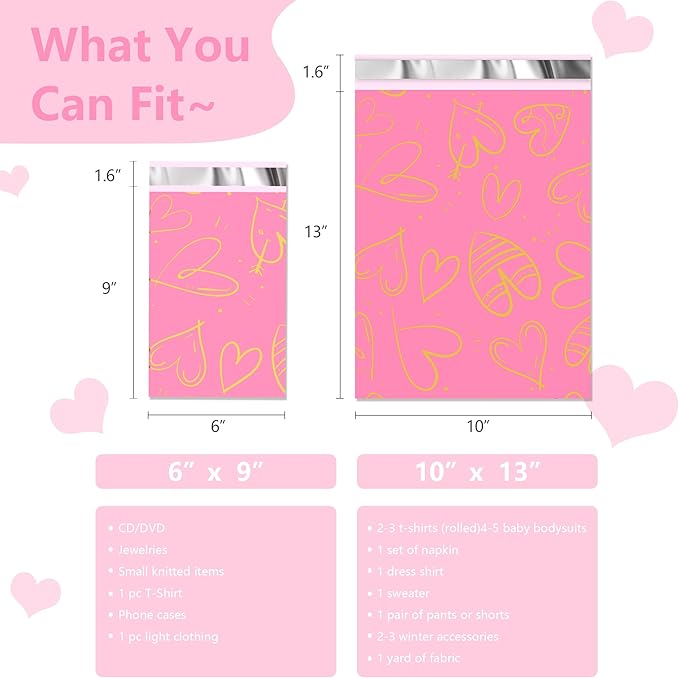 Thank You Poly Mailers 6x9 Inch 100 Pcs - Heart printed Shipping Bags, 2.4mil Thickness, Waterproof and Tear Resistant Mailing Envelopes, Self-Sealing Packaging Bags for Clothing