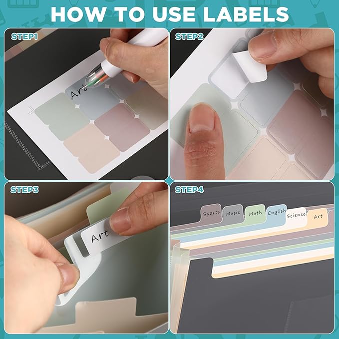 - Organize Your Documents with Ease: our file folder organizer is the nice solution for those who want to keep their documents sorted and easily accessible; With 13 pockets for storing various documents such as bills, statements, receipts, and more, you'll have no trouble finding what you need quickly; The 4 x expanding file folders come with 4 sheets of labels (12 pieces per sheet) that make it easy to label and identify each pocket