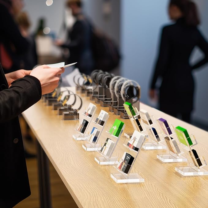 - 【Shapes Your Professional Image】The unique L-shaped design and 65° angled backboard make this card holder display stand out from the crowd, while ensuring that your cards remain upright and organized. It helps shape your professional image and leaves a lasting impression on clients and colleagues.