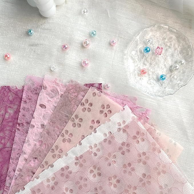 Aromoty 30 sheets A5 Unique Textured Scrapbook Paper&Mesh Fabric set - Handmade Craft Mulberry Special Paper Mix for Scrapbooking Junk Journaling Supplies Card DIY Materials Collage, 5.8x8.2 Inches