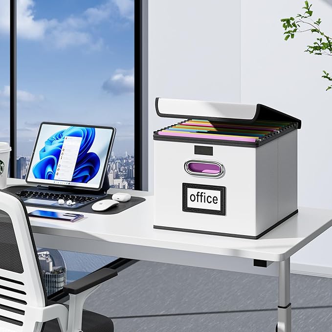 - Unique Functional Design - This file boxes both sides are equipped with practical PVP slide rails, which can not only prevent the two sides of the file storage box from loosening, but also facilitate the sliding of the file folder, which is very suitable for hanging file folders. The metal handles on both sides allow us to easily move the storage box, and the label slot on one side facilitates classification. Functional features and a beautiful design create the best filing box organizer.