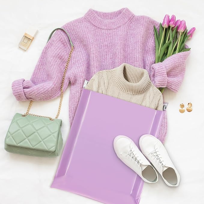 - Heavy Duty Large Poly Mailers-The Fuxury 14.5x19 plastic shipping bags,pack of 50pcs,with purple color.The brand new lavender purple lets eyes bright,adds more colors for dull moments of shipping and life.This unique attractive color helps the parcel to stand out and your dear customer find them easily.