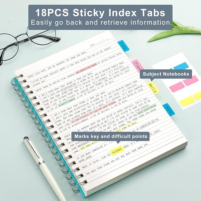 - 300 Pages Spiral Notebook: With 150 sheets/300 pages of classic 7mm college ruled paper, 7.48" × 10.15" large B5 size. Provide plenty of writing space for you. With 18 pcs divider sticky notes for better classify and make you more professional