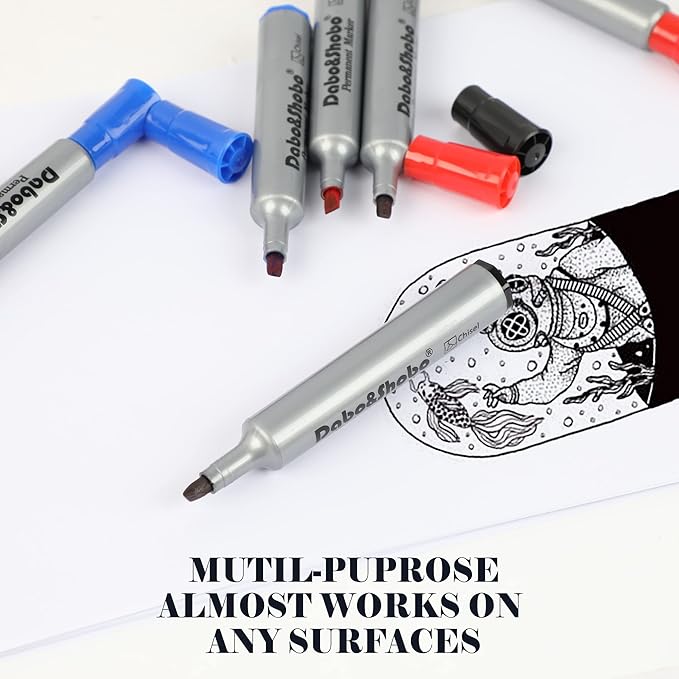 Dabo&Shobo Permanent Markers 24 Count, 3 Assorted Colors, Chisel Point Permanent Markers For Kids and Adult Coloring as Office, School Supplies