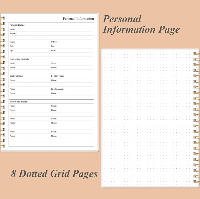 - A5 SIZE - This undated daily organizer size of 8.5 x 5.8 inch, perfect size to fit in your bag.1 quick reference page, contact pages, important dates page, and 75sheet (150 page) daily plan & notes,8 dotted grid pages, Undated appointment planner makes it easy for you to start the planner at any time.