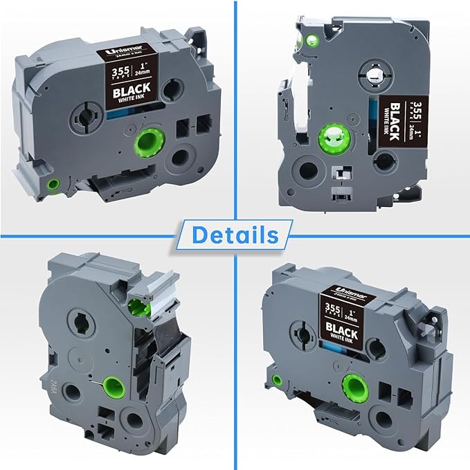 Unismar TZe-355 Compatible for Brother Ptouch 24mm 0.94 Laminated White on Black Label Tape TZ355 TZ Tape Work for PTD600 PT-P700 PT-2430PC PT-D600VP PT-D800W PT-P900W Label Maker, 1'' x 26.2', 4-Pack