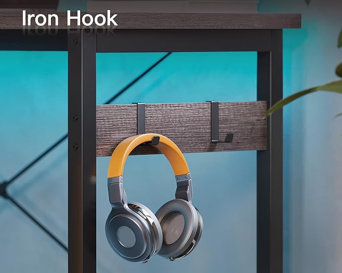 - 【Super Sturdy & High Stability】: The l desk is equipped with two diagonal braces to ensure stability. With premium MDF board and a sturdy metal frame ensures a long-lasting using, an iron hook for hanging your headphones. The adjustable leg pads to keep the desk stable on uneven floors.