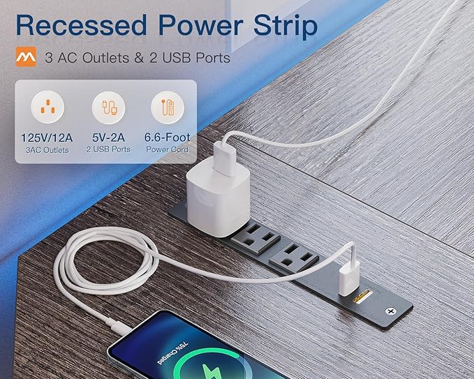 - 【USB Charging Ports & Power Outlets】: The l shaped computer desk features 3 standard plug outlets and 2 USB ports, allowing you to conveniently charge your laptop, smartphone, tablet, printer and gaming devices while you work or play games.