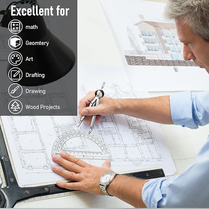 - 2 Piece math set: compass and protractor are great for drawing circle and measuring angle, good for students, teachers, engineers, designers, artists, etc.