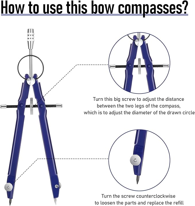 - Warm notice: if you receive the product and found the screw of compass is loose, do not worry, it is not a quality problem; The loose screw makes it easier for you to turn the pencil down; You can tighten the screw after using pencil replace divider part