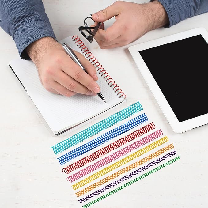 - 【Reliable to Use】Made of quality plastic for increased durability and holding strength. coil-bound spines are sturdy, long-lasting, and allow you to easily compile paper and store it for a long time. Plastic wire binding spines allow 360-degree page-turning rotation capability for easier reading, bound projects can lay flat, and add or reduce paper easily, convenient for you to use.
