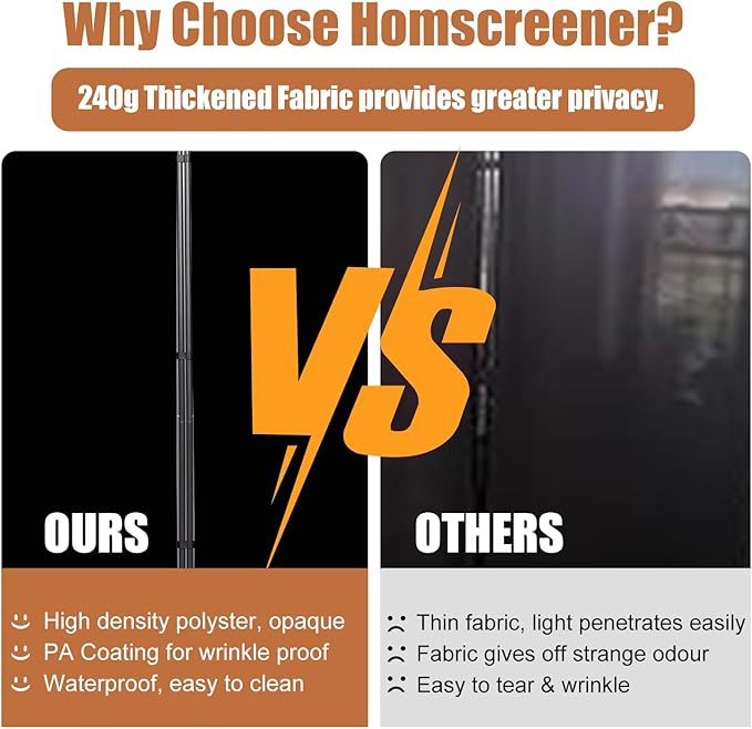 - Upgraded & Long service life: The room divider frame is made from φ20mm steel tubes with frosted coating to resist corrosion and rust. The 240gsm thicker cloth provides superior concealment and is impervious to light. The PA coating makes the polyster fabric wrinkle-proof and tear-proof. The upgraded room divider is easy to clean, just wipe gently with a cloth