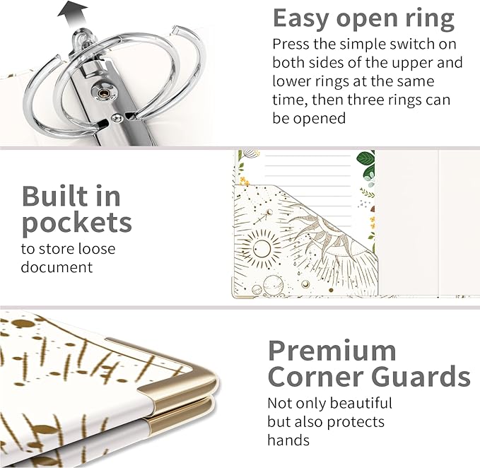 - 【High Quality Materials & Durable Use】Made of high-quality cardboard material, sturdy binder with full color printing and gloss lamination. (Let's protect the earth from now on by reducing the use of plastic!);Durable metal corner protectors are beautiful and wear resistant.