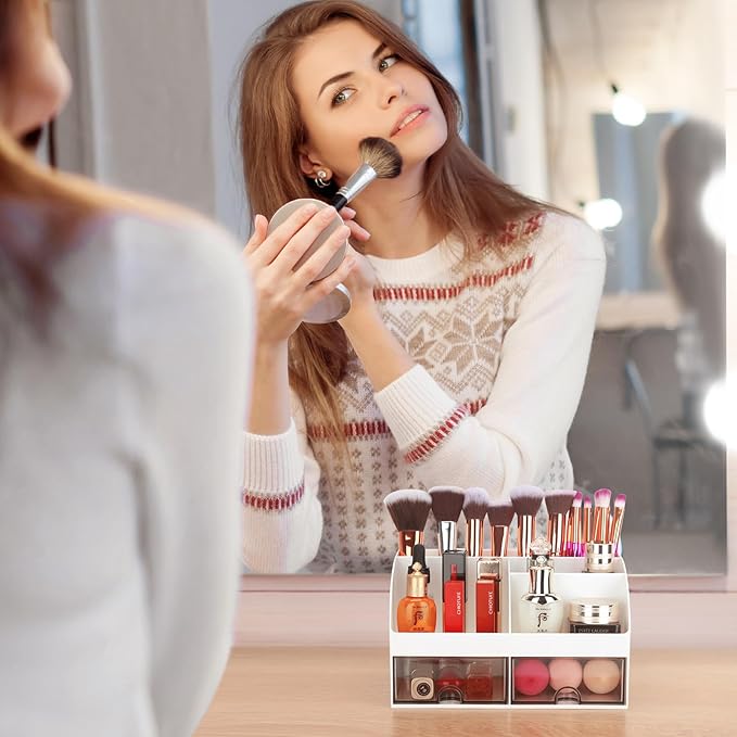 - PRACTICAL & MULTIFUNCTIONAL - Desktop Storage Box has 2 drawers and 6 compartments, to provide enough space to store your daily essentials for easy access, Transparent drawers allow you to quickly find what you need.Keep the stuff you need at hand, while staying out of your way.