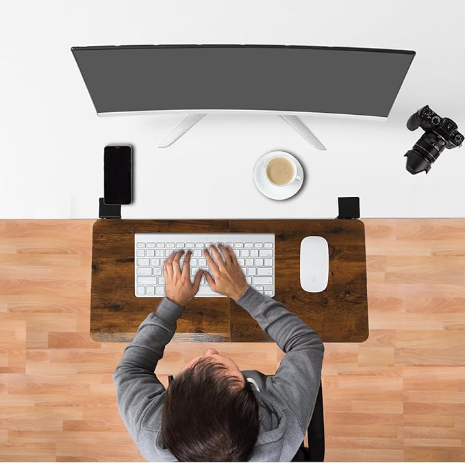 - 【Morden Ergonomic Design】Desk extenders also help to keep the user's hands and arms in an ergonomically correct position while typing. You also can put the keyboard closer to you, and place the monitor at an appropriate distance from the eyes. This reduces eye-focusing on the screen, and you can expand your workspace while protecting your eyes.