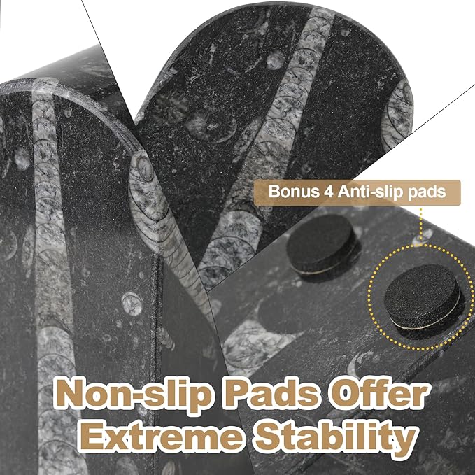 - Enhanced Stability: Each set of Koville marble bookends includes four anti-slip pads that ensure a secure grip on any surface, Weighted 7lbs, preventing your books from toppling over. Also a thoughtful gift that adds both beauty and practicality to any space.